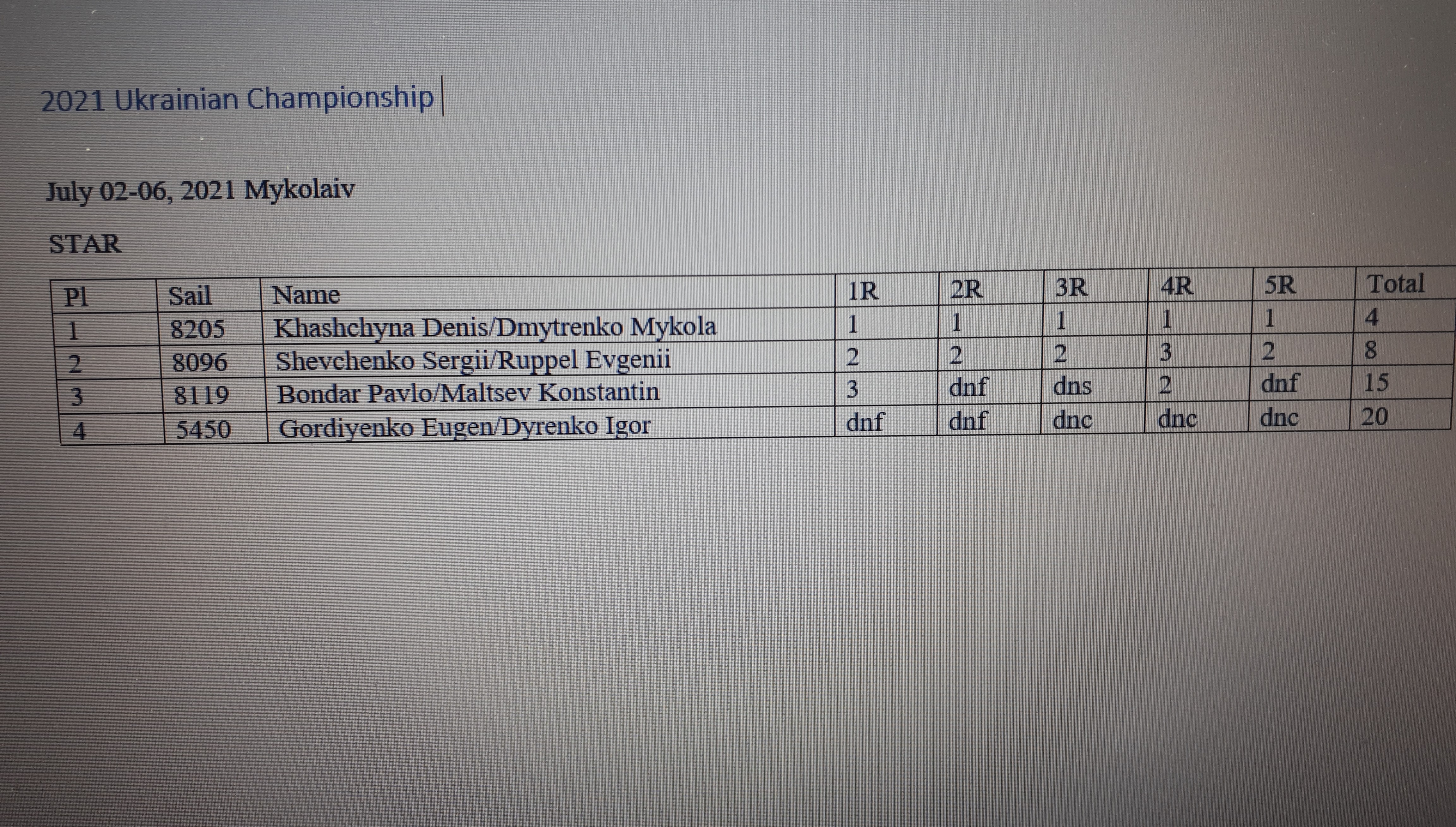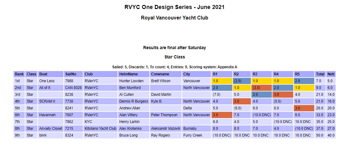 2021 May One Design