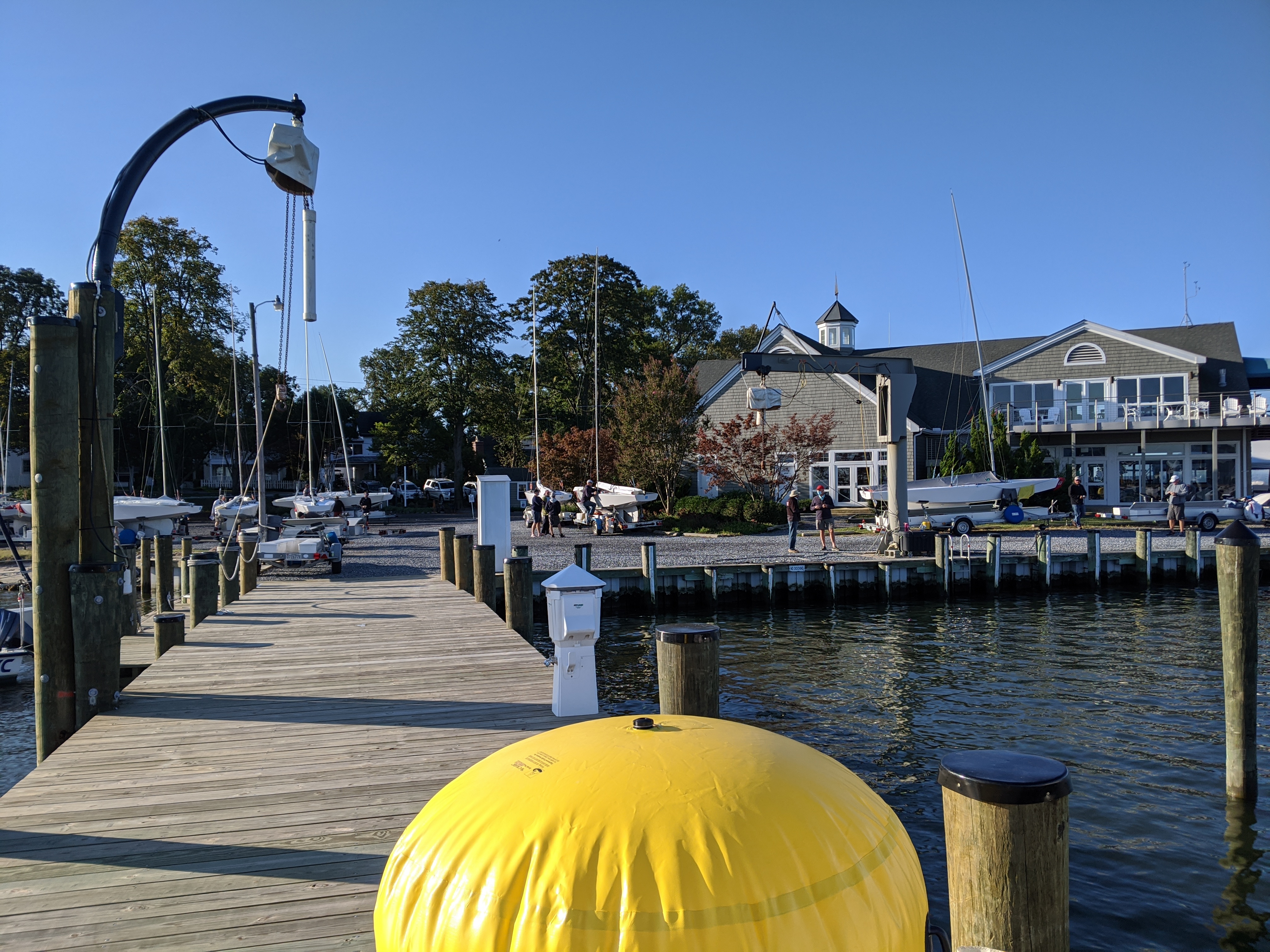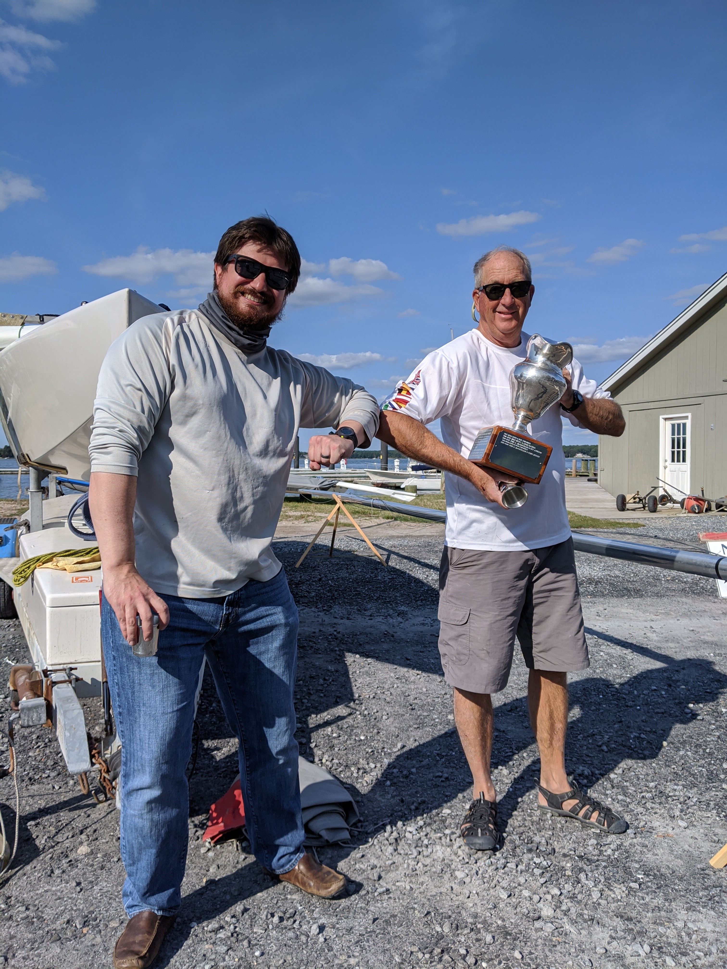 Saturday was a great day of sailing with a solid 10kts breeze out of the North and slowly laying down. Ben Sternberg, who drove in from New York, took the first race with a solid lead. Aaron Serinis took 2nd with Kevin McNeal taking 3rd. The second race was taken my John MacCausland of District 2 who probably has more hours logged on the Choptank River than 90% of the local ES Fleet members. Tom Price, who is now the newest Blue Star of District 2 after being the top finisher at this regatta took second and Shane Zwingelberg taking 3rd after missing the first race. I could not see either of these finishes to give more detail as I was having a hard time distinguishing sail numbers from clear astern by a wide margin. By the end of the second race the breeze had dropped to somewhere around 4-5kts and the committee with John Devlin as PRO made the wise decision to tow in. Because of Covid and to try and stop large groups ftom gathering we encouraged everyone to stay in the water for the night as we utilized the great dockage at Tred Avon Yacht Club. Most boats stayed in and while it was not required I think people enjoyed not having to haul and launch each day so that is something we will continue to keep in mind for future events.