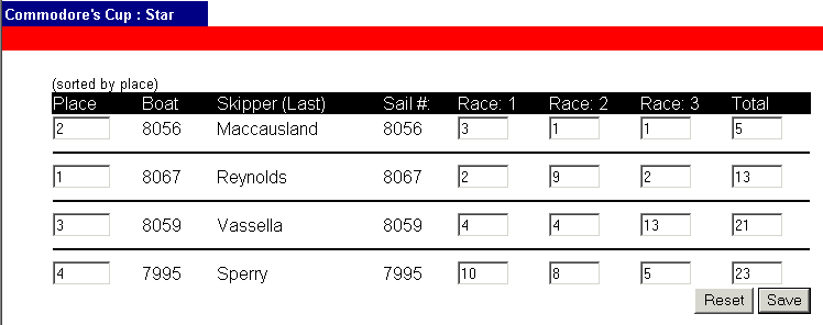 position. Once you have entered the results for each boat, click