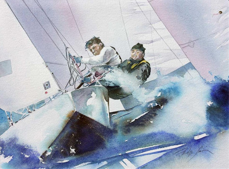 From his atelier in the stiff stone walls of Antibes' ancient shipyard, Philippe depicts with exceptional skill and technique the images he gathers while travelling and while sailing. His marine aquarelles production have been exhibited and acclaimed in the world's top sailing destinations.