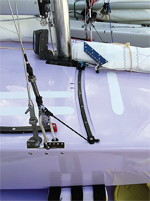 Torben Grael is here in Miami with his new Lillia. It is purple. That’s right, not white. But that's not the only innovation. He is bringing a Soling concept to the Star, actually one that was tried by his countryman Jorge Bruder at the '72 Olympic Games in Kiel… the self-tacking jib. This is a concept that may have performance advantages at the top end of the fleet but may also be good for the weekend sailor who wants to take a buddy along who doesn’t know much about sailing. The ease of tacking is obvious but the same holds true for gybing.