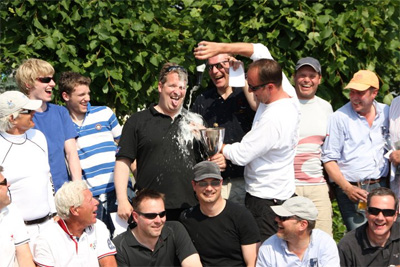 | Racing for 100 years! At the "Erich F. Laeisz Prize" of 3-5. June 2011 at the Norddeutscher Regatta Verein club on the outer Alster Sea, twenty Star teams sailed for the coveted prizes. Winner of this 100th Birthday event for the keel boat were Felix Gold & Oliver Vitzthum, with Reinhard Schmidt) & Niels Hentschel second and Heiko Winkler & Uwe Thielemann finishing third. To mark the centennial anniversary of the International Star Class Yacht Racing Association the organizers extended the annual "Laeisz Prize" of the the Hamburg and Luebeck Star boat fleets from two to three days. With fantastic weather and the typical rotating winds of 7-12 knots. the Alster sailors completed six races. On Saturday the wind was felt simultaneously from all directions, so race director Hans-Herbert Hoffmann, after three hours of "Hopes and Fears" delayed the races to Sunday. The race on Sunday compensated for this involuntary break. The "veterans" race, was won by Hans-Jurgen Bense & Herbert Braasch. As usual, the catering service left little to be desired: fish from the grill on Friday night at the clubhouse of the MSC on the Elbe and the traditional asparagus dinner on Saturday evening on the terrace of the NRV - a party which went on into the wee hours. Thus it was not important at the prize giving ceremony that the main prizes were missing and were engraved wrong ... |