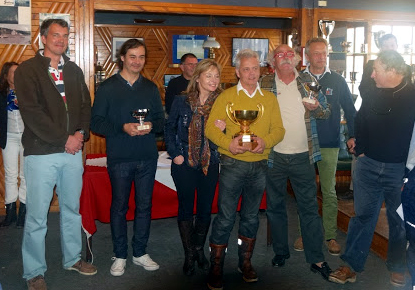 | 33 rd Pinatel Trophy - Nov 1st to Nov 3rd 2013 Report by Philippe Treanton - Photo Gerard Jourdas - Sailed at Cercle de Voile de Paris The 2013 Pinatel Trophy was held from November 1st to 3rd, gathering 22 crews from Finland, Germany and France represented by 5 different fleets. The race course offered various conditions from southerly light winds up to 15-20 knots westerly winds. The right side of the race paid with favorable wind and a strategic positioning at the marks. Congratulation to Uwe Hanneman and Anette Dahms from Germany who won the 33rd Pinatel Trophy by showing consistency in the 12 races. The winners are followed by crews Chaboud/Mercier, Rolland/Ozanne and Hardouin/Le Moing who all leaded temporary daily results. A special mention is also given to young skipper Victor Eonnet crewed by Philippe Guittoneau who started to demonstrate their talent by regularly showing in lead positions during races of this national event. Friday night, the participants appreciated the succulent tartiflette accompanied by white wine. Many thanks to the chef cook Roget Quenet. Saturday night was organized the traditional dinner party at the restaurant of the yacht club. Special thanks are addressed to participants Herve Godest and Olivier Guerin, Yacht Club President Francois Laborde and race committee Marie Therese Jourdas for their implication and the organization of this event.