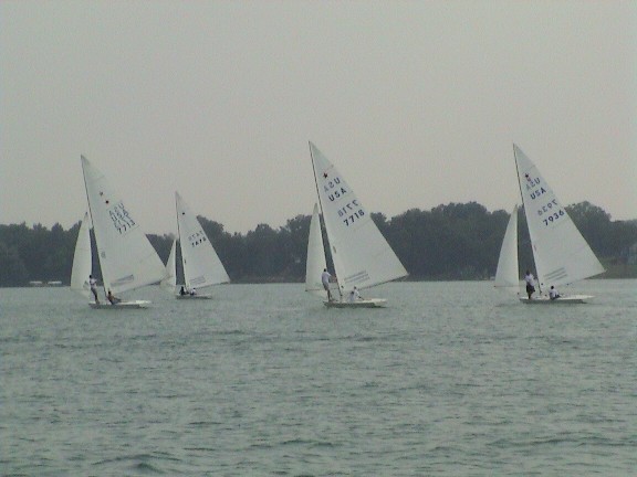| The Gull Lake Star Fleet hosted the 2002, 4th District Green Star, July 20 – 21. Ten sailors from five fleets participated in the event. The racing was very close as the sailors saw varied conditions throughout the four race series. The championship came down to the final race, which saw the strongest wind of the regatta. It was star sailing at it’s best with the entire fleet separated by less than 45 seconds. Race One started at 10:30 AM, Saturday morning. The wind was light, 5 to 8 mph, out of the south. The lake was flat so the competitors could see the wind and keep their boats moving. Local champion Tick Ticknor, and Craig Lockerbie reached the top mark first followed closely by newcomers Greg Smith / T.C. Belco and Mike Blackwood / Scott Reiske. Smith / Belco passed Ticknor / Lockerbie on the run, only to get passed back on the next beat. The two boats went back and fourth over the next three legs as the wind got really light. In the end it was Ticknor / Lockerbie with the win, followed by Steve Rubinkam / Mat Perderson in second, and Smith / Belco in third. Race two would be the toughest race of the regatta. The wind was light, 3 to 5 mph, and the lake was getting very choppy with motor boat waves. The race got started at 12:30 PM with the sailors all working the right side of the course. The fleet reached the weather mark in a big pack, and spread out on the run. Al Covington and Richard Beal sailed a great run and opened up a big lead. They were able to hold on over the next three legs to win the race. Smith / Belco finished second followed by local whiz kid’s Roger Turner / Tony Collard. Racing was cancelled for the day, as the wind couldn’t compete with motor boat activity. Race three got started at 9:30 AM Sunday morning in a nice breeze. The wind was SW at 8 mph and building. Mike Blackwood / Scott Reiske got off to a clean start and opened a sizable lead at the weather mark. Jim Babel and Bill Hawk led the rest of the boats around the mark and put on a charge. The pack brought fresh breeze down the course and narrowed Blackwood’s lead, but the two- time, 210 National Champion showed his grit and held on to win the race. Babel / Hawk finished second, followed by Smith / Belco. Race four was the best of the regatta. The race committee set a large course as the wind continued to build. Smith / Belco sailed a great first beat and led the group to the weather mark. They widened their lead on the run and held off the competition the rest of the race. They got the win, and the Green Star. Babel / Hawk finished with a strong second in the race followed by Turner / Collard in third. It was a great event that saw close racing the entire weekend. Congratulations to all the sailors for a job well done. The Gull Lake Country Club did a wonderful job hosting the event, as everyone had a great time. |