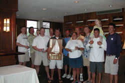 | A typical Chesapeake Bay dying North Easterly brought us shify breezes, tons of current and lots sloppy seas. We are fortunate that the Etchells crowd joins us for this event, they make the racing and parties bigger and better. In the end the cream always rises to the top and Aaron Serinis and Will Wagner showed us how it all works. Newcomer Peter McChesney and Todd Hiller (J22'ers converted!!) were fast out of the box in their first Star event, placing second and taking home the Novice Trophies. Doug and Bob Schofield were third and John Vanderhoff and Andrew Parrish took home the Masters trophies. Ken Schmidt won the Etchells Class followed by Charles Coyer in second and Chuck Coyer in third. As expected Annapolis Yacht Club and Mark Murphy did the very best they could in very trying conditions. |