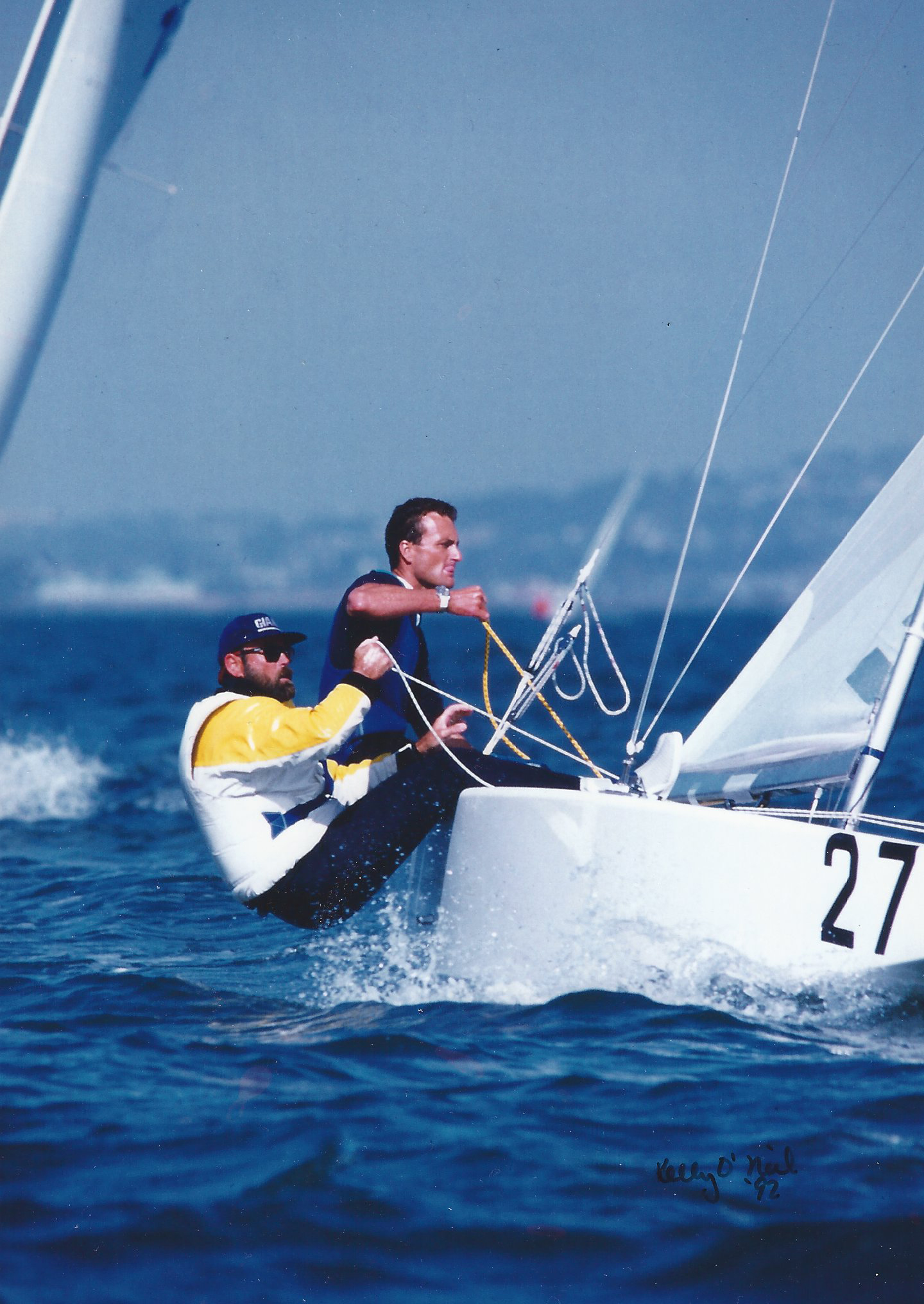 Carl Buchan won the sixth and last race of the series, which might not have meant much, except that the two series leaders Londrigan and Cayard both had bad races and could not find daylight. Londrigan dug himself into a dark hole on the slow side of the course but arrived behind a hard-bottomed top nine. Cayard and Londrigan were not self-obsessed but they couldn't break through, while everything was falling into place for Buchan. Carl Buchan and crew Hugh Schreiner won the race and the Star World Championship.