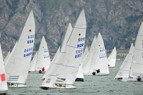 It was a long Monday here at Fraglia Vela Malcesine on beautiful Lake Garda for the start of the 2014 International Star Class World Championship. A ferocious storm during the previous night hindered the afternoon wind. After an hour and a half delay, a stable Ora developed, but the over-eager fleet of 87 teams required two general recalls and a Black Flag before the fleet got away. Even then Race One was festooned with disqualifications.