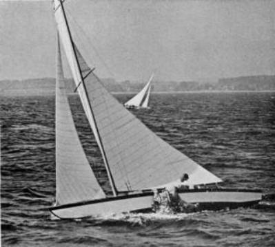 Walter von Hütschler had his crew Egon Beyn carry this hiking technique to another level with the crew hanging onto the side of the boat. Here we see them on their way to win the 1939 World’s.