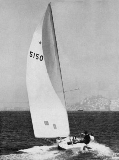 In 1966 Lippincott Boat Works began construction of fiberglass Stars and Tom ordered up one of these boats later in the year. Here we see Tom cruising along on San Francisco Bay. Still no hiking straps: you had to hang on however you could.